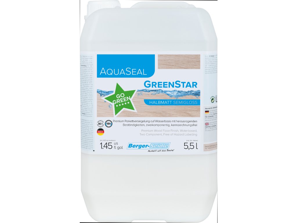 Aqua-Seal GreenStar je 2-složkový vodní impregnační lak prémiové třídy na bázi polyuretanu s vynikající odolností a univerzální použitelností. Výrobek je kompletně bez označení, neobsahuje včetně tvrdidla žádné symboly nebezpečí, žádný isokyanát, žádný aziridin, žádné H a P věty a při reakci neuvolňuje žádný CO2. Navíc nabízí extrémně dlouhou dobu zpracovatelnost minimálně 12 hodin. Díky svým speciálním vlastnostem a elasticitě je zvláště schválený také pro korek